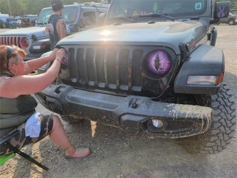 Decals that can be added to your headlights for a touch of sass for your Jeep! Does not interfere with night vision as it is perforated vinyl. These are a cool way to give your vehicle a personality during the day.